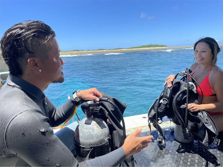 海でのトラブルを回避しながら、楽しく安全にダイビングを楽しめるよう徹底した指導を行っています。